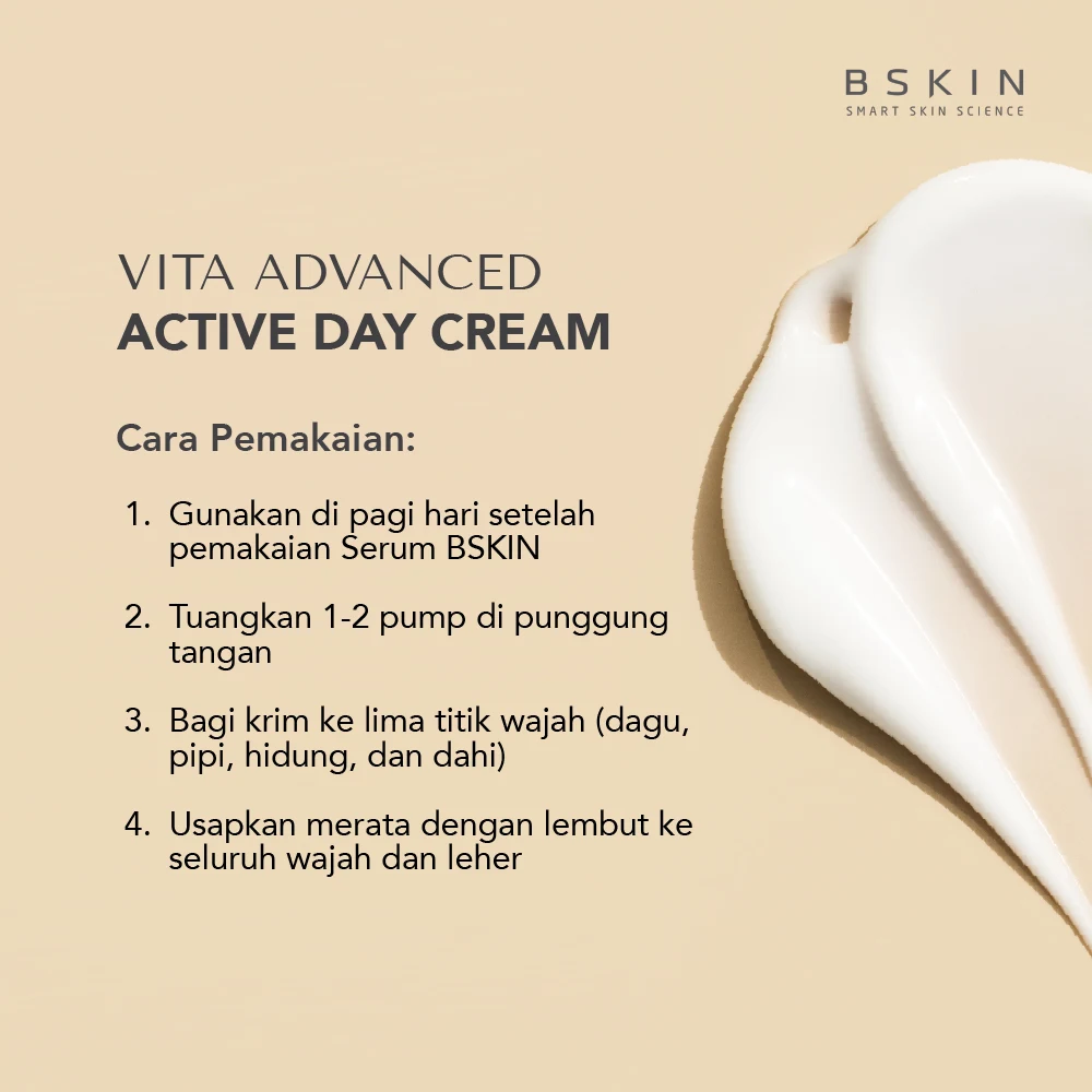 VITA ADVANCED Active Day Cream is a fast-absorbing cream that delivers a blend of special ingredients to revitalize dull and tired-looking skin.